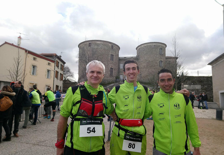 * 16h15. Le micro résonne dans la vallée de Monistrol-sur-Loire. Le coup d’envoi du 35km est donné. Les favoris partent en trombes. Nos trois coureurs sont plus réservés : l’objectif est de finir. Après un bon départ, Jean-Luc connait un coup de moins bien à mi-parcours et va serrer les dents pour franchir la ligne d’arrivée. Clément quand à lui, fait la course inverse : un début difficile pour finir à une belle 14ème place. Le trio est complété par Jean-Christophe, qui nous propose lui-même sa vision de la course dans "Parole de coureurs" ci-bas.